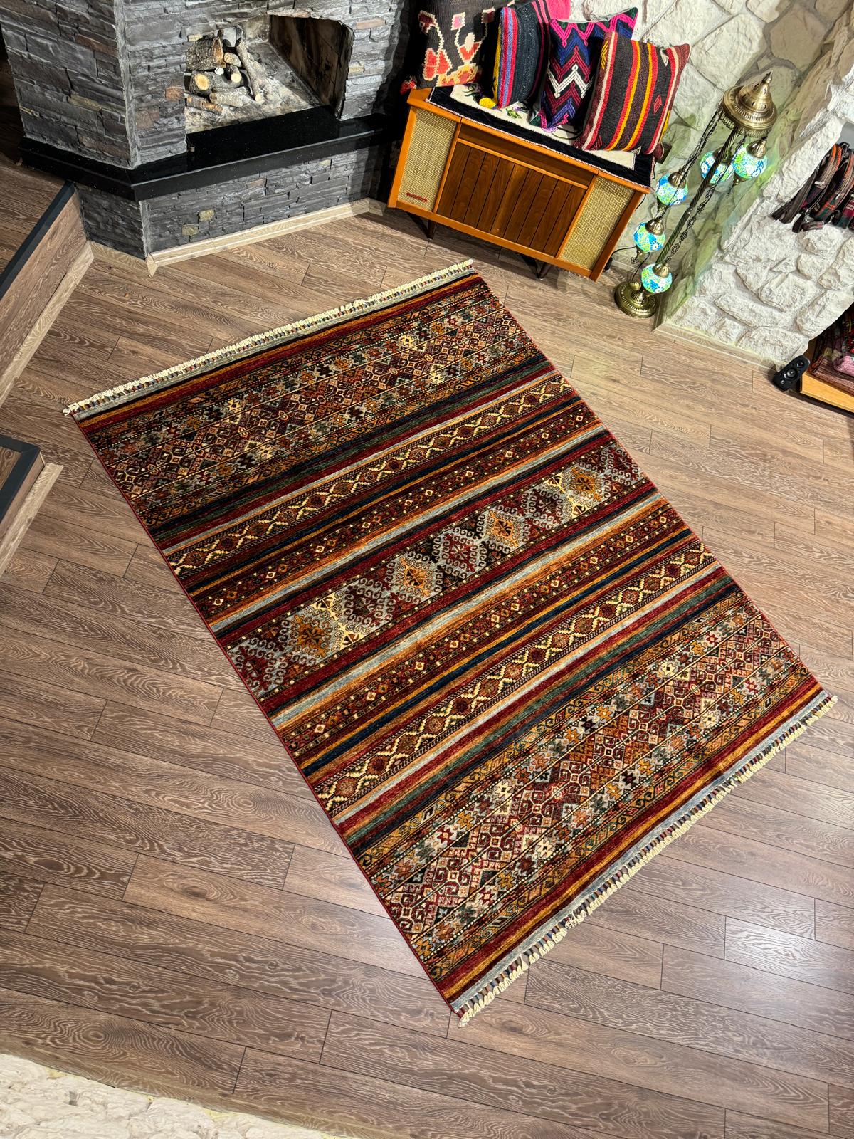 - El emeği göz nuru, Afgan el dokuması HORJİN modeliyle evinizin dekorasyonuna otantik bir dokunuş katın.; - 245x165 cm boyutlarındaki bu dikdörtgen halı, geniş alanlar için idealdir ve mekanınıza şıklık katar.; - Yün materyali sayesinde yumuşak dokusuyla ayaklarınızın altında konforlu bir yürüyüş deneyimi sunar.; - Orta hav yüksekliği (6 - 12 mm) ile hem şık hem de dayanıklı bir kullanım sağlar; temizliği kolaydır.; - Düz saçak tipi, modern ve sade bir görünüm sunarken aynı zamanda halının kenarlarını korur.; - Antialerjik özelliği ile alerji riski taşıyan bireyler için sağlıklı bir yaşam alanı oluşturur.; - Klasik tema/stil, zamansız tasarımıyla her türlü iç mekan dekorasyonuyla uyum sağlar.; - Canlı kırmızı rengiyle mekanınıza enerji ve sıcaklık katar; göz alıcı bir atmosfer yaratır.
